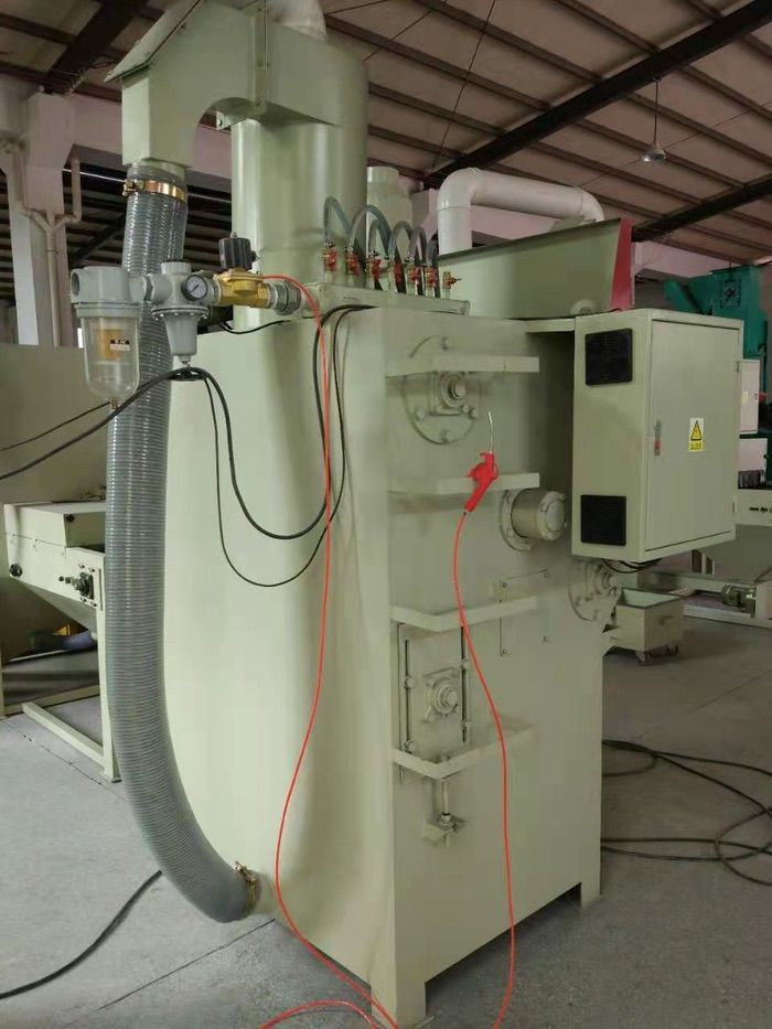 本自动喷砂机是针对不怕碰撞产品的喷砂加工要求而设计制作的专用喷砂设备。具有加工效率高,操作简单,节约能耗,环保无污染,喷砂加工后的产品喷砂效果均匀。本设备为密闭内循环舱式喷砂机,配置专业的旋风分离器,可实现磨料与粉尘的有效分离,保证产品加工的高质高效,同时最大限度节省磨料的消耗,独立的抽风除尘系统,能有效地收集和清理室体散布的粉尘,防止粉尘污染。